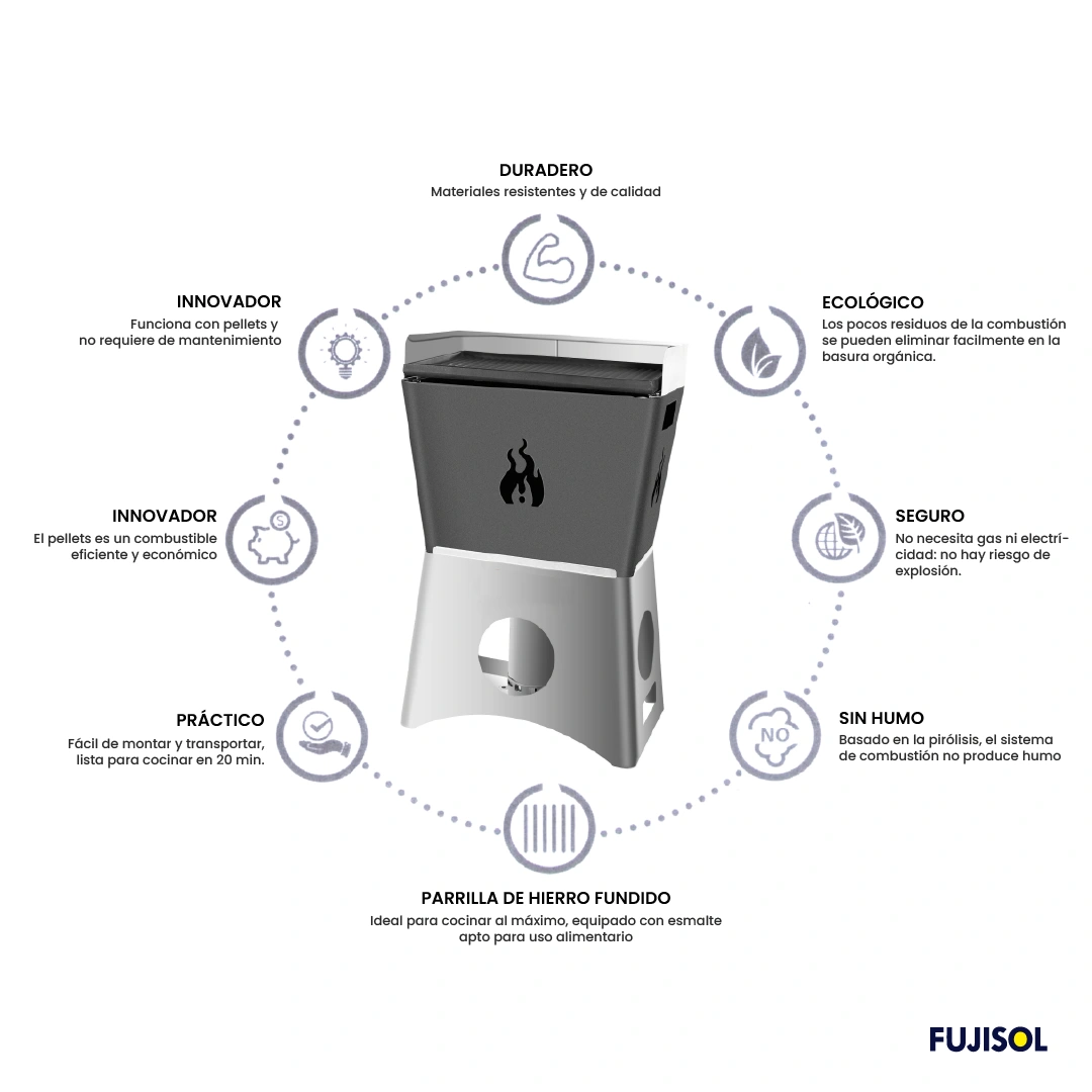 La barbacoa de pellets portátil BBQ Grilly es una nueva forma de imaginar el placer de la barbacoa. Esta barbacoa de pellets fue diseñada como un sistema de cocción innovador, que ofrece a todos la oportunidad de disfrutar del sabor tradicional de la comida.