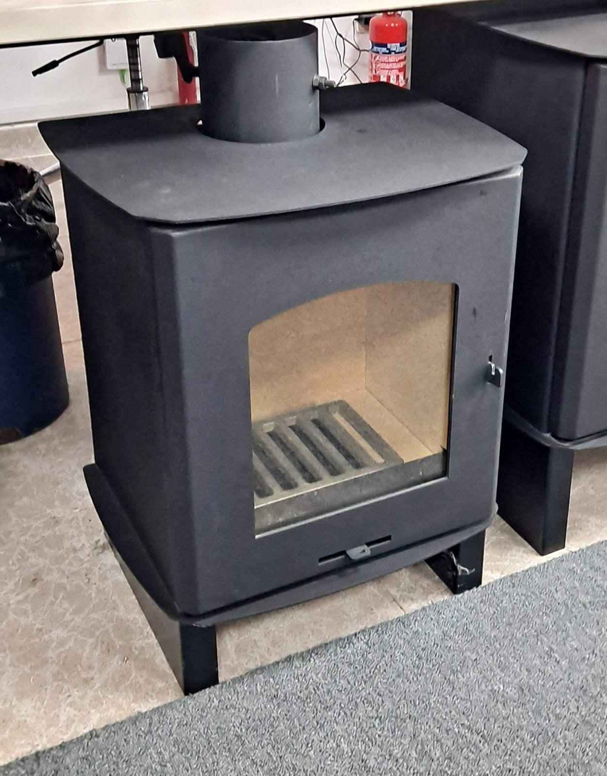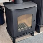 Estufa de leña compacta, elegante y eficiente, fabricada en acero con cristal templado. Ideal para calentar estancias pequeñas o medianas con estilo y seguridad.