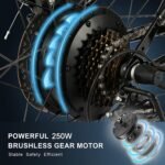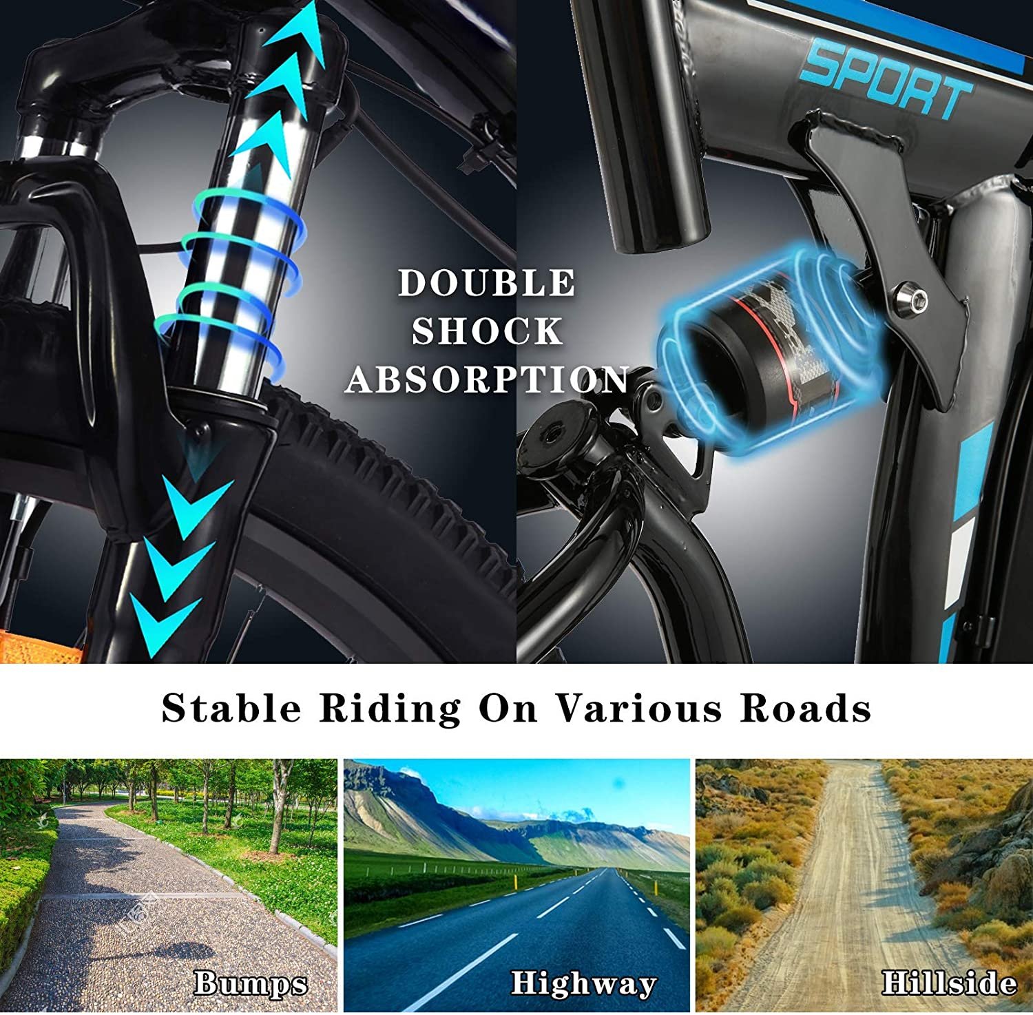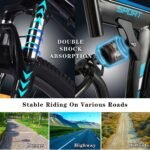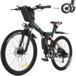 Bicicleta montaña para adultos, plegable, ruedas 26″, potencia 250W, con batería extraíble de 8Ah, 21 velocidades, doble suspensión, carga de 4 a 6 horas. Velocidad máxima 25 hm/h. Ideal para viajes.